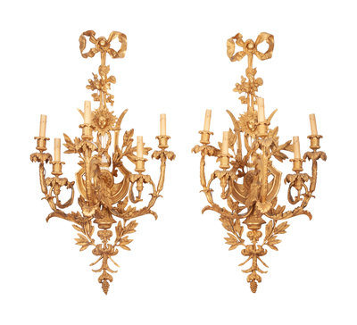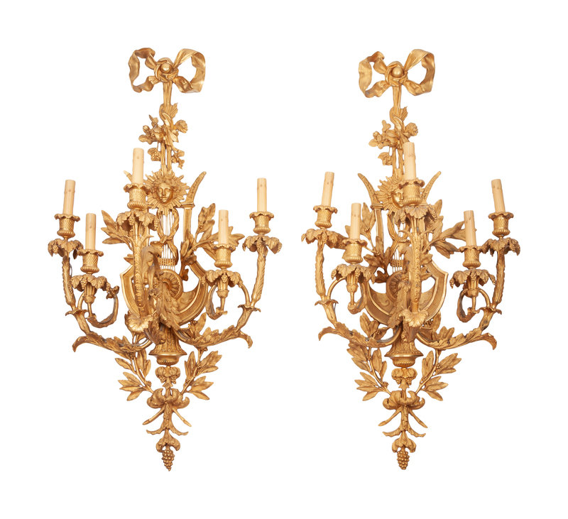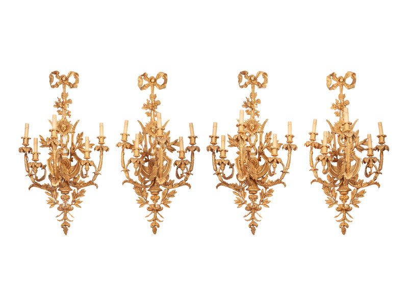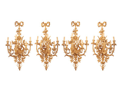 A Set of Four Louis XVI Style Gilt Bronze Five-Light Scones