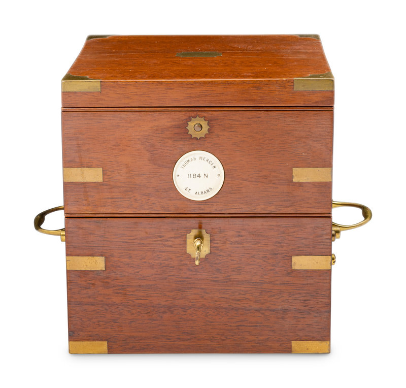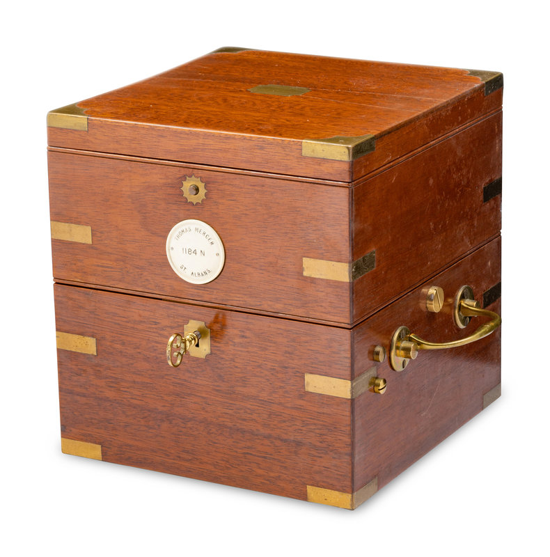 the case and dial numbered 1184N, with a winding key and lock key.