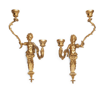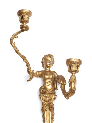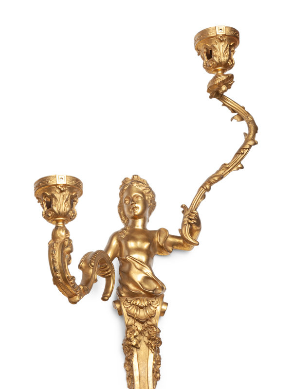 A Pair of Louis XVI Style Gilt Bronze Figural Two-Light Sconces