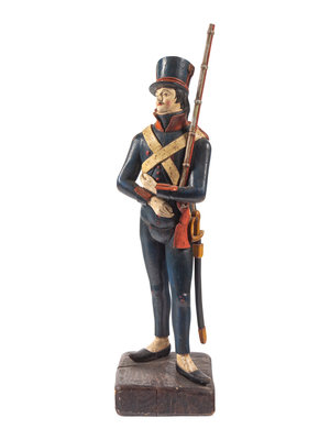 A Carved and Painted Wood Figure of a Soldier