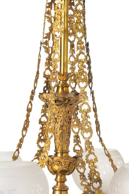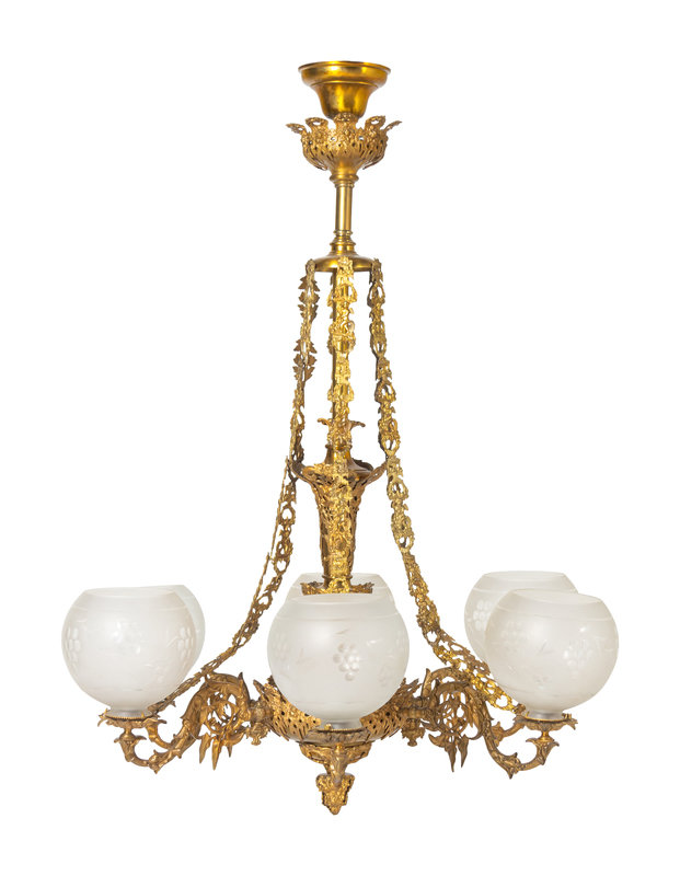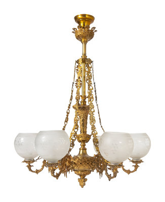A Cornelius and Baker Six-Light Gilt Metal Gasolier