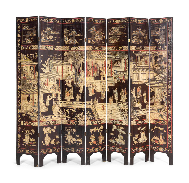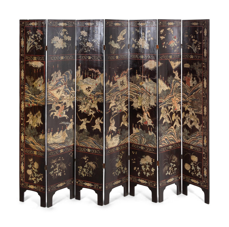 A Chinese Export "Coromandel" Lacquer Seven-Panel Screen