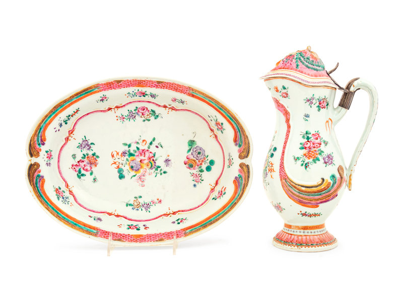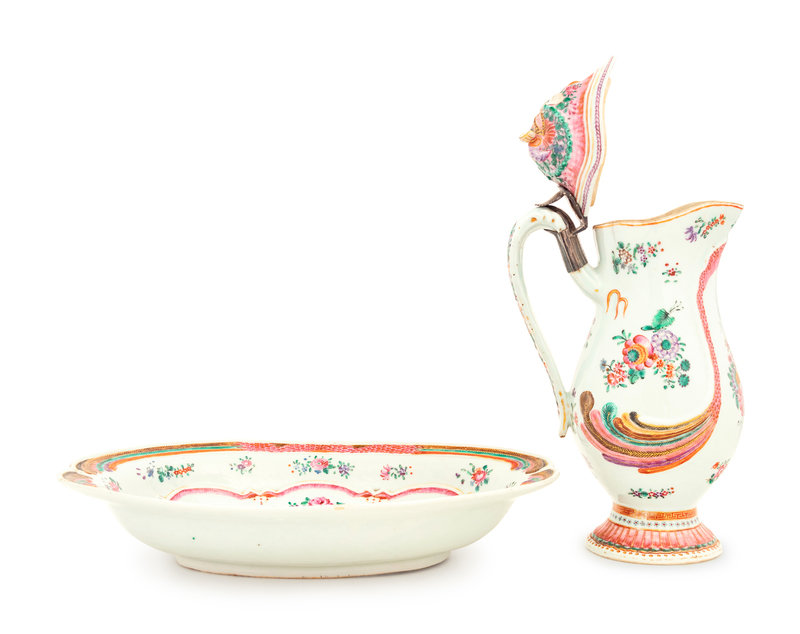 A Chinese Export Famille Rose Porcelain Pitcher and Basin