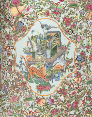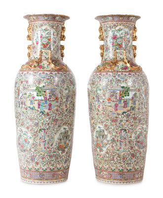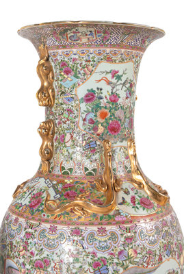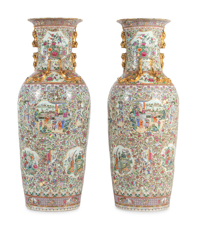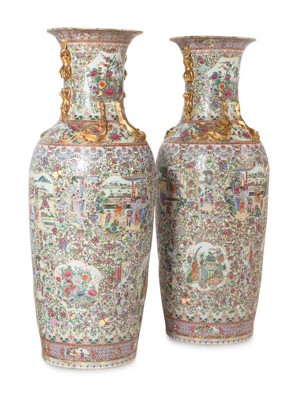 A Pair of Large Rose Medallion Porcelain Floor Vases