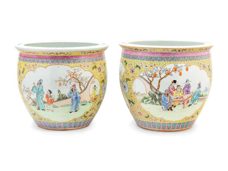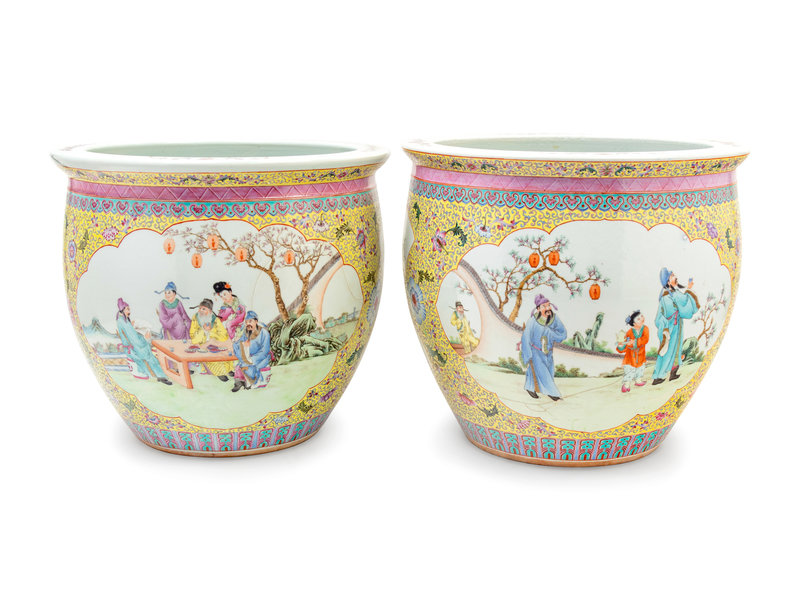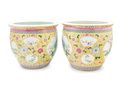A Pair of Chinese Export Yellow Ground Enameled Porcelain Jardinières