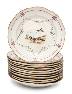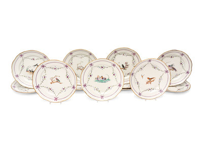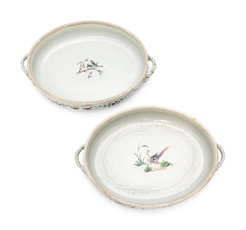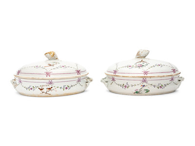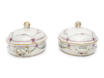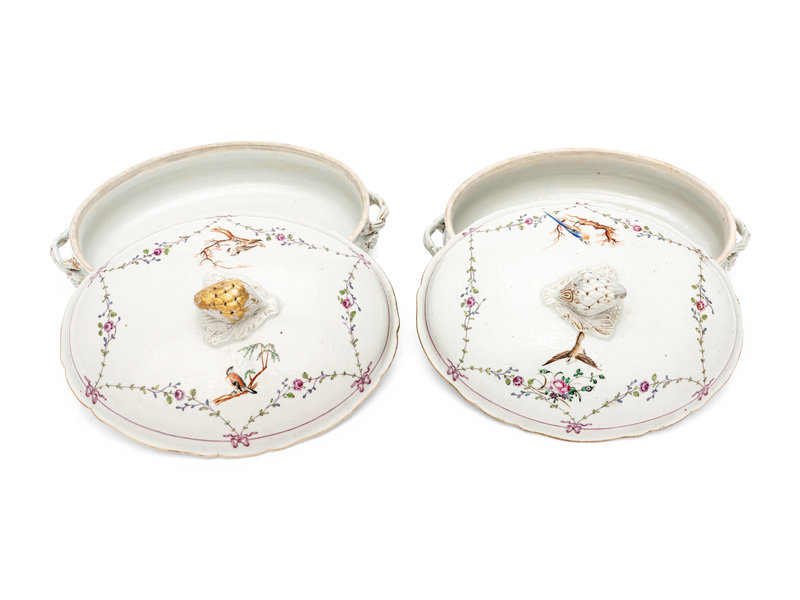 A Pair of Chinese Export Porcelain Vegetable Dishes and Covers with Twelve Matching Plates