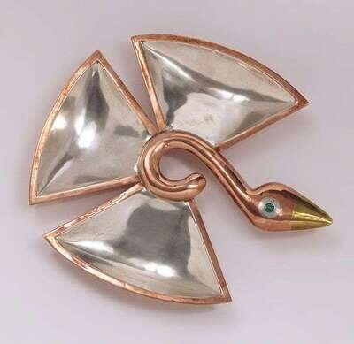 A TAXCO MEXICAN SILVER & COPPER BIRD DISH