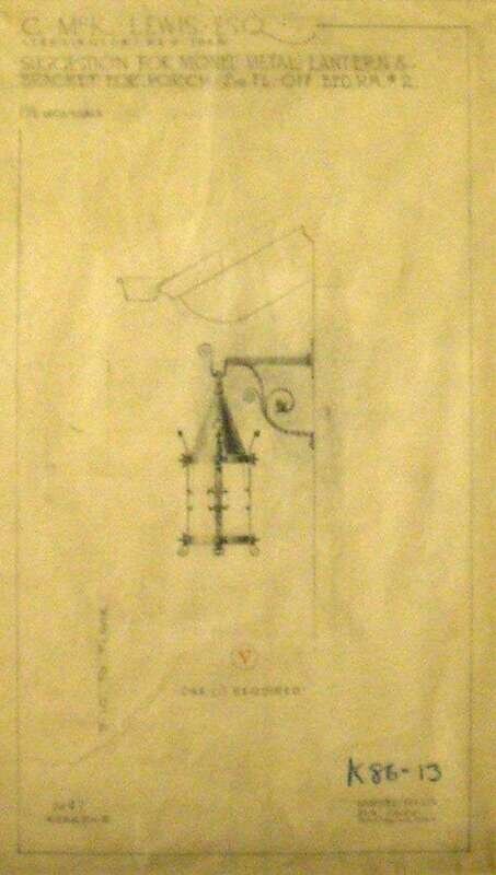 Suggestion for metal lantern and bracket, Clarence Lewis residence, Sterlington, N. Y.
