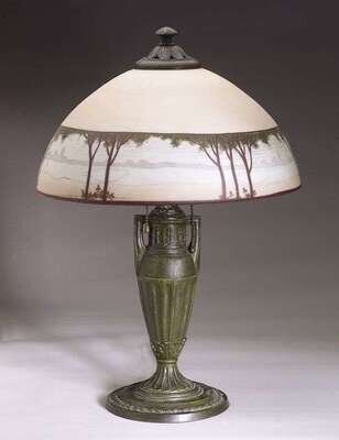 A "PITTSBURGH" PAINTED GLASS LAMP