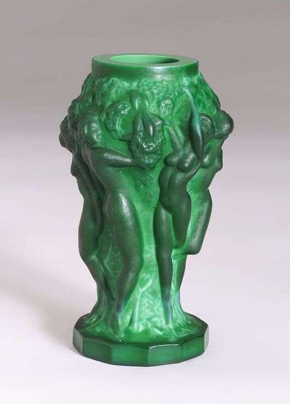 With entwined female nudes and tree branches on a faceted base, mint, h: 5 in.