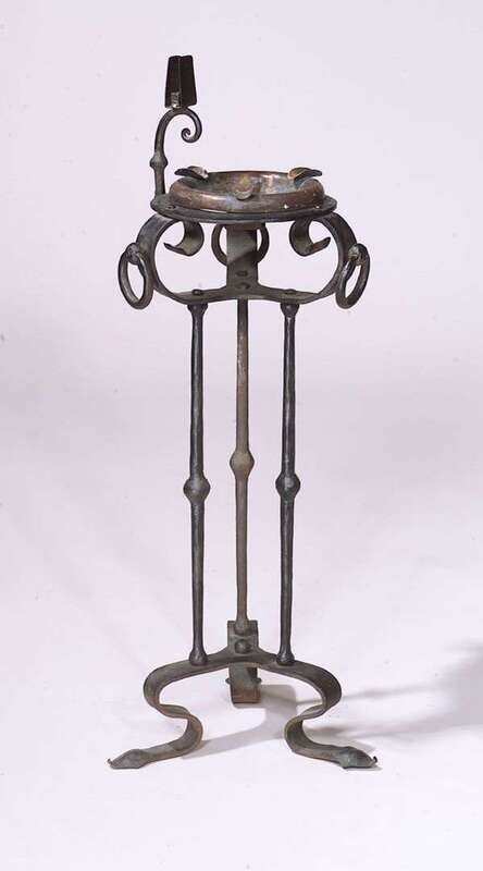 AN ARTS & CRAFTS WROUGHT IRON SMOKING STAND