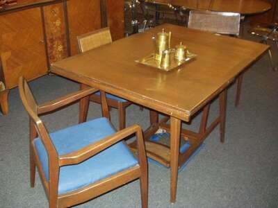 A JENS RISOM MAHOGANY TABLE & FOUR CHAIRS
