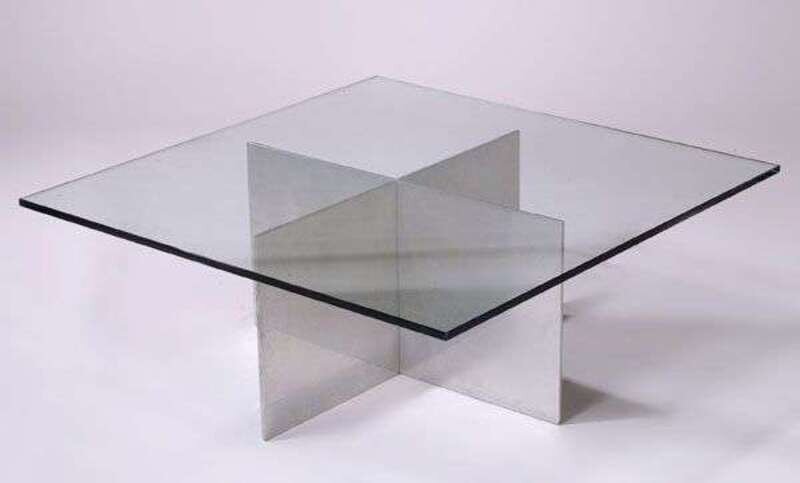 Designed 1968, knock-down aluminum base with glass top, h: 12 3/4, 31 x 31 in.