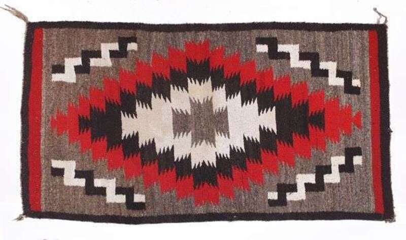 Brown, red, black and gray geometrics, 5 ft. 3 in. x 2 ft. 10 in.