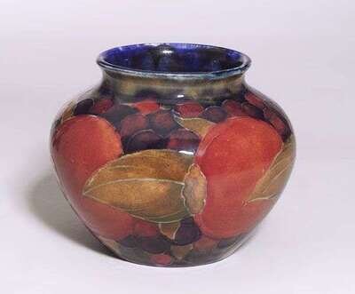 Hand-decorated in soft tones, cobalt interior, h: 3 1/3 in.