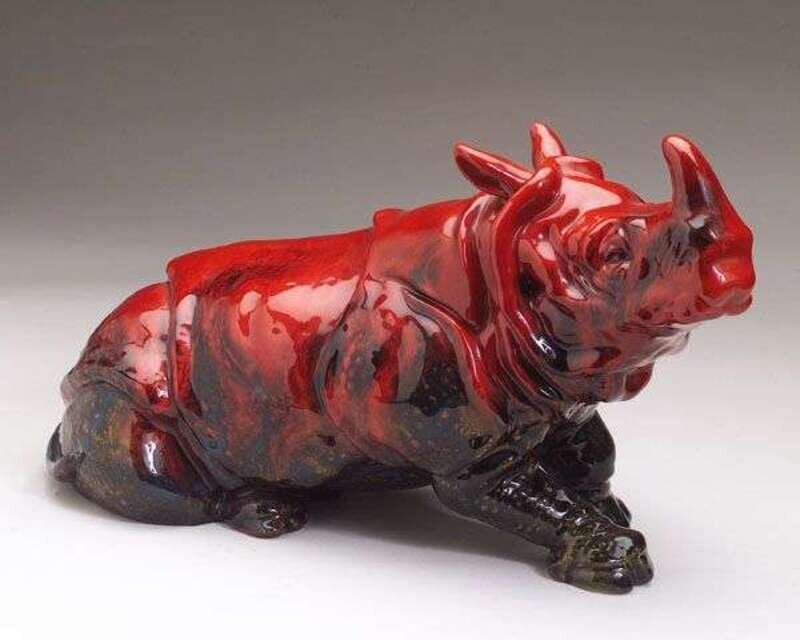 A ROYAL DOULTON FLAMBE RHINOCEROS