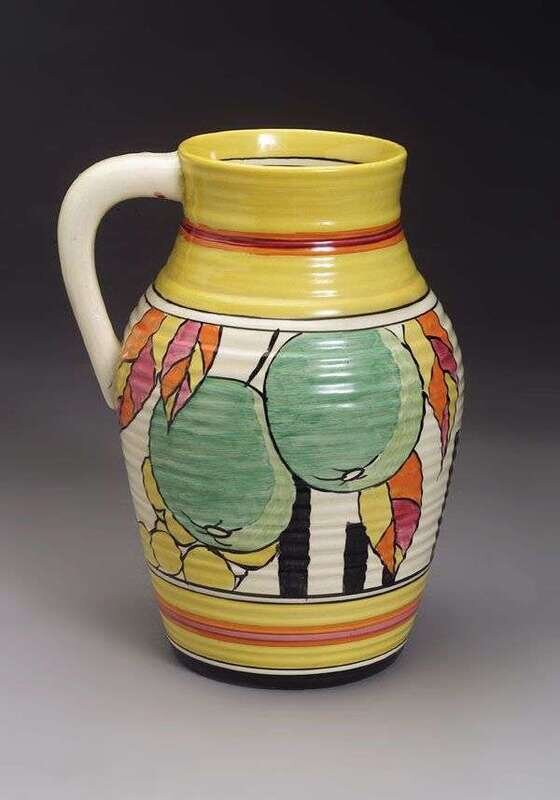 A CLARICE CLIFF APPLES PATTERN LOTUS JUG