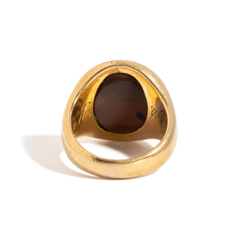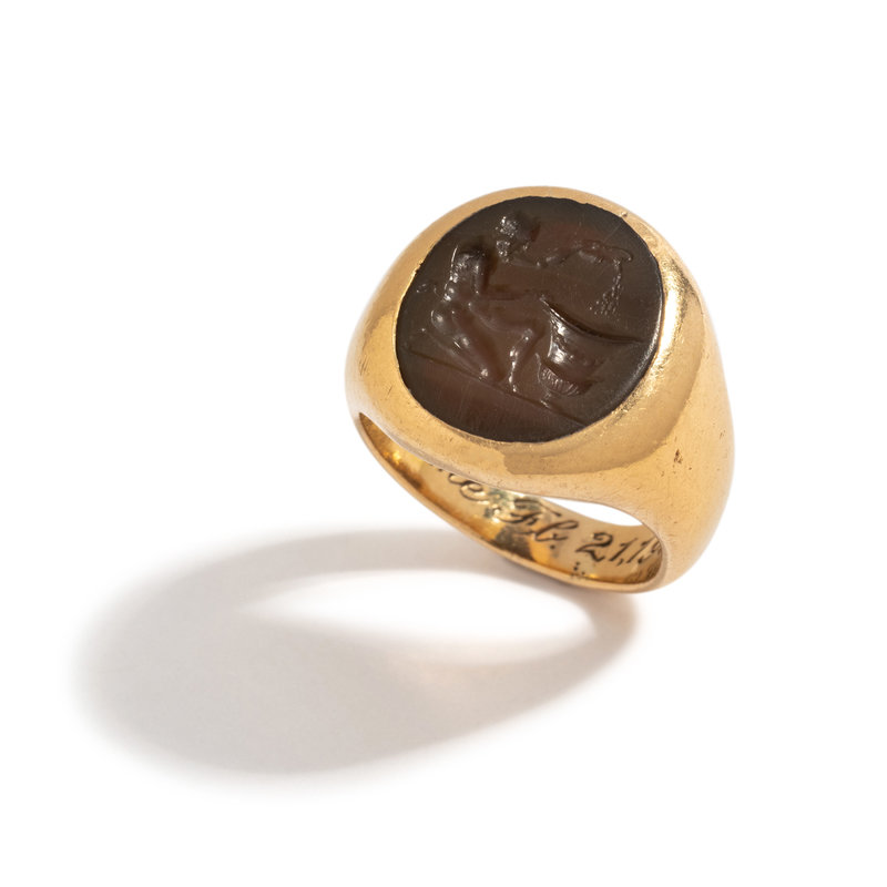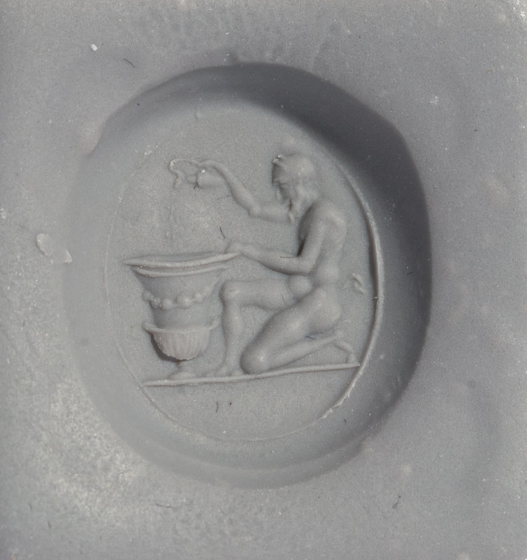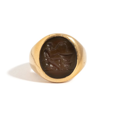 A Roman Carnelian Ring Stone with a Satyr Mixing Wine