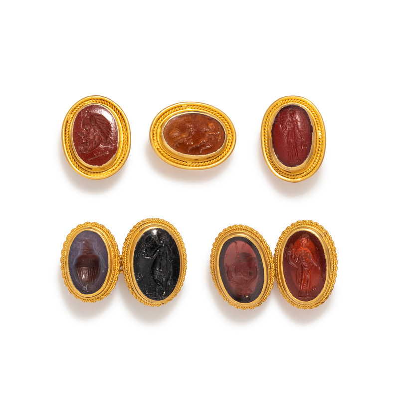 A Gold Tuxedo Stud Set with Seven Roman Intaglios