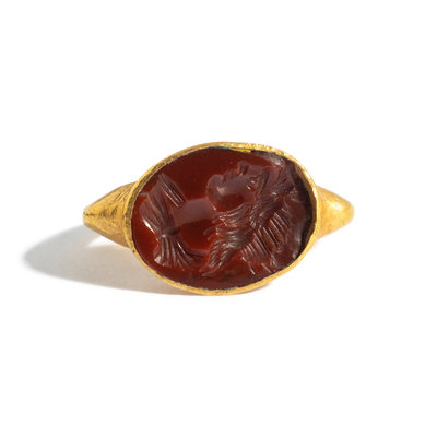 A Roman Gold and Carnelian Finger Ring with the God Helios