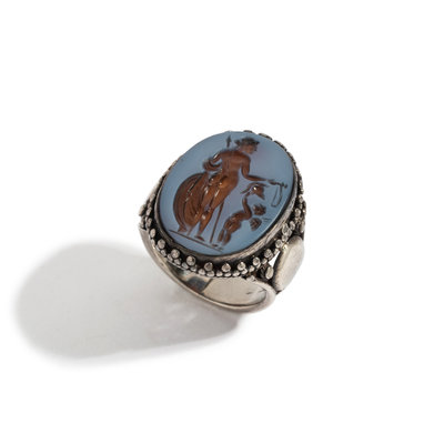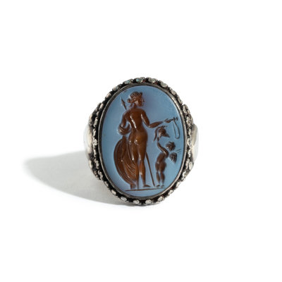 A Roman Nicolo Ring Stone with the Gods Aphrodite Areia and Eros