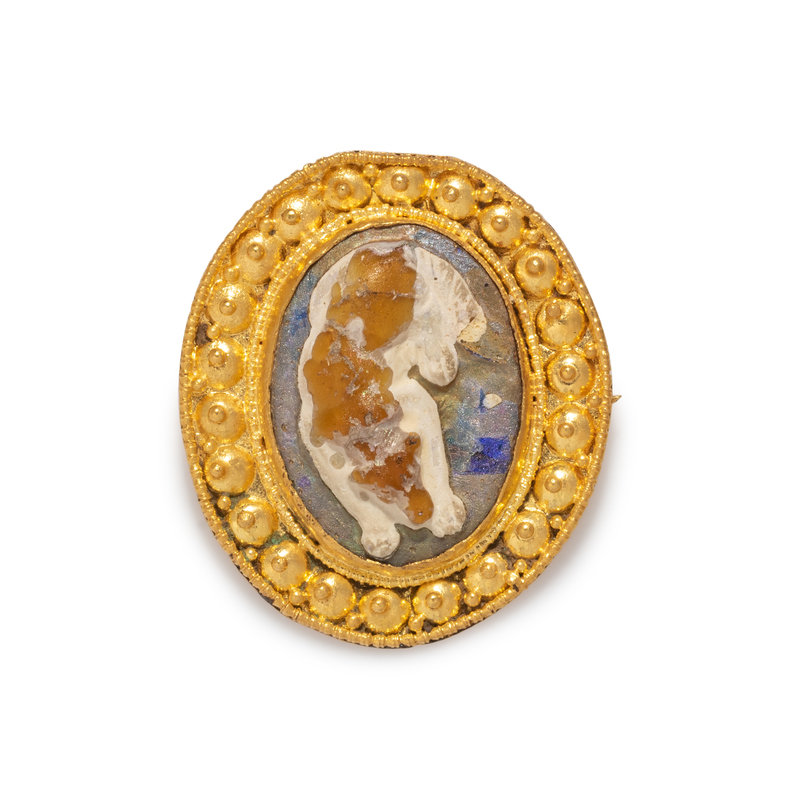 A Roman Gold and Glass Cameo Brooch with a Sleeping Dog