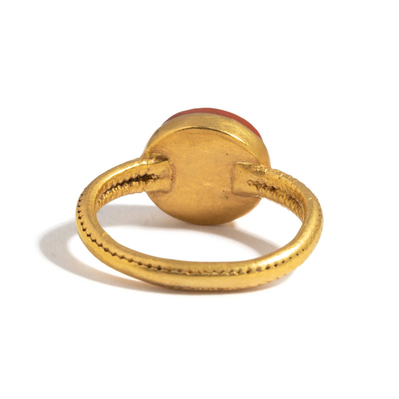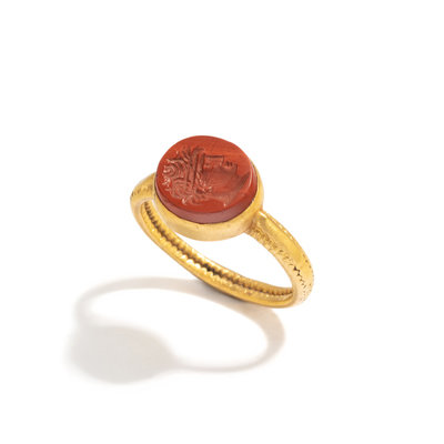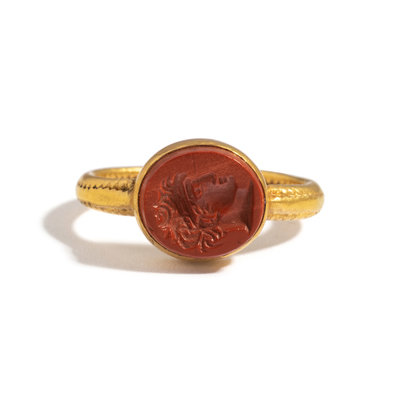 A Roman Gold and Red Jasper Ring Stone with a Portrait Head of an Athlete