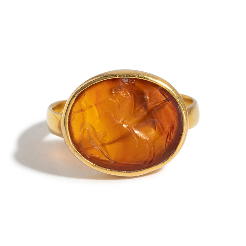 A Late Roman Agate Ring Stone with a Hunting Scene