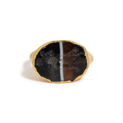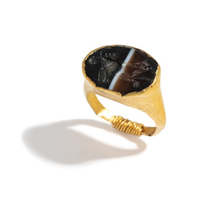 A Roman Gold and Banded Agate Finger Ring with the Goddess Diana