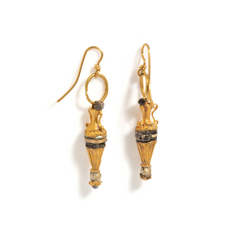 A Pair of Roman Gold and Pearl Amphora Earrings