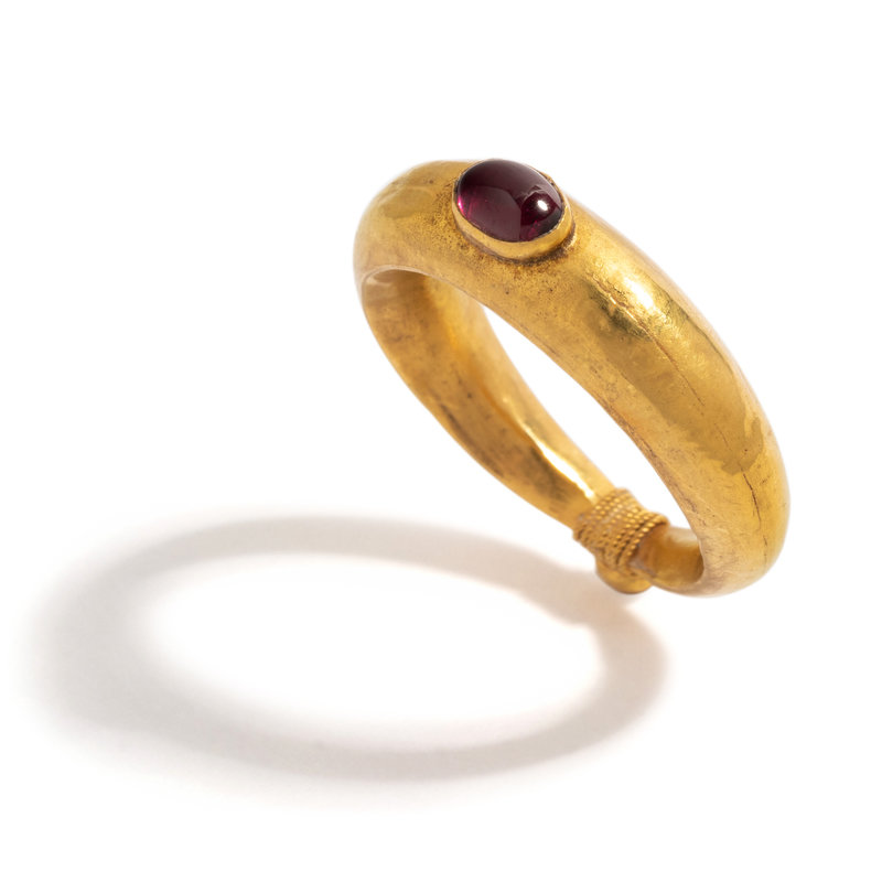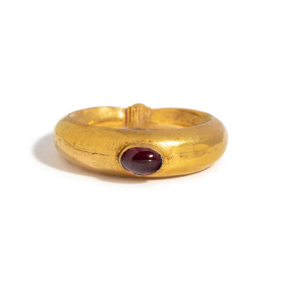 A Roman Gold and Garnet Cabochon Finger Ring