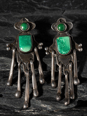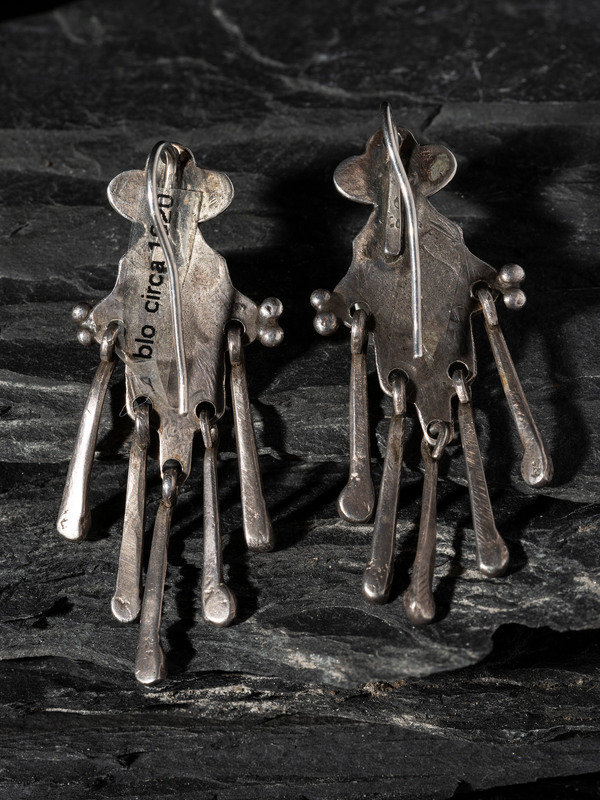 Early Pueblo or Navajo Silver and Turquoise Hook Earrings