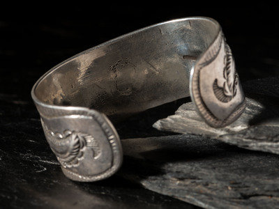 Early Navajo Ingot Silver and Turquoise Cuff Bracelet