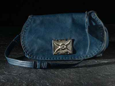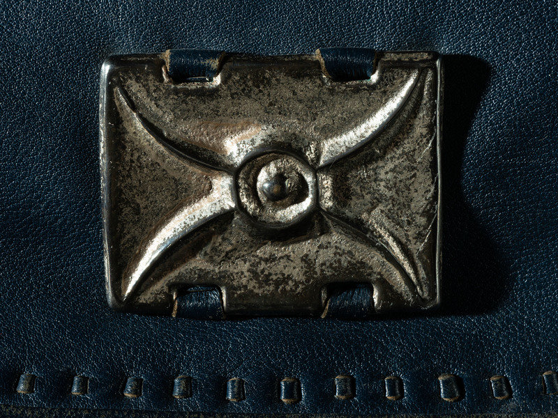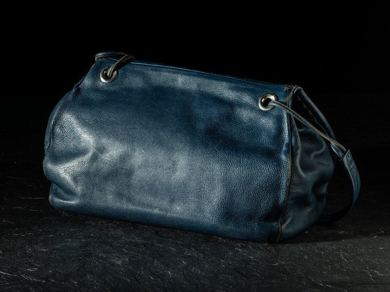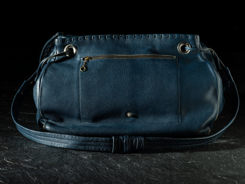 Large Navy Blue Drawstring Purse, with Sand Cast Silver Decoration