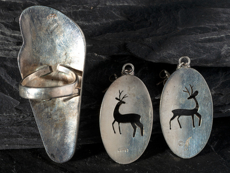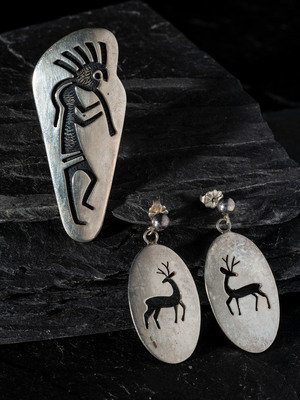 Silver Overlay Kokopelli Ring AND Deer Post Earrings