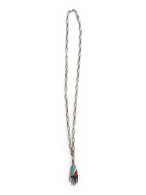 inlaid with turquoise, shell, coral, and jet; marked with artist's peyote bird and P hallmark