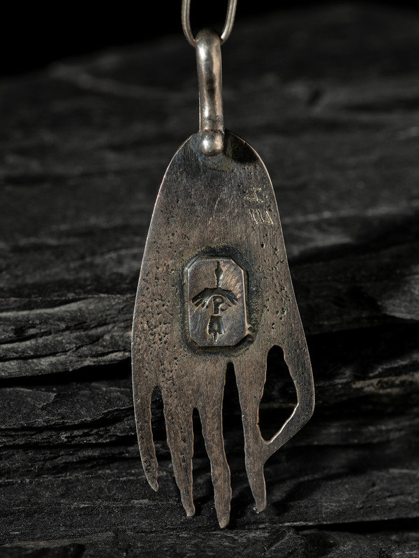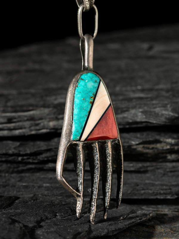 Silver Tufa Cast Bear Paw Pendant, with Inlay