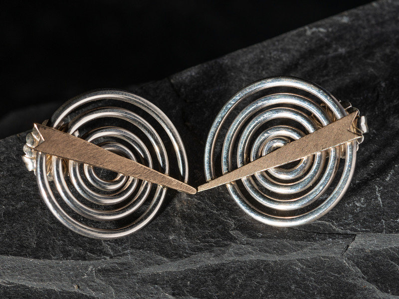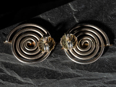 Silver Spiral Post Earrings, with 14K Gold Arrow Accent