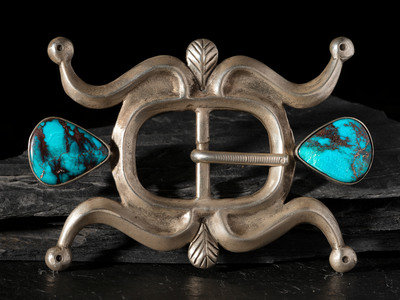 Sandcast Coin Silver and Bisbee Turquoise Belt Buckle