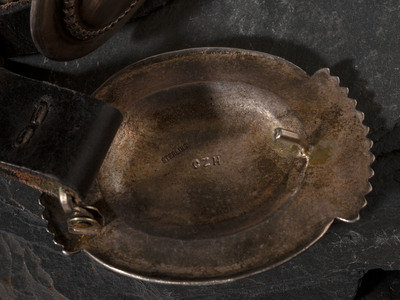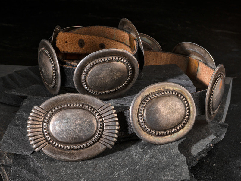 concha length 2-1/2 inches x width 2-1/8 inches, buckle length 3-1/8 inches x width 2-3/8 inches, belt length 35-1/2 inches, total weight 211.4 dwt.
