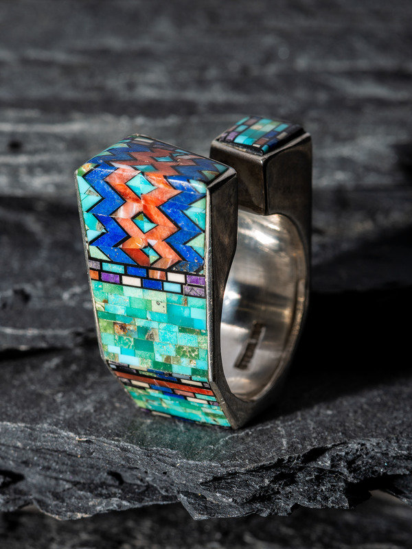 Micro Mosaic Sterling Silver Asymmetric Ring