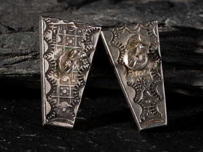 Pair of Figural Micro Mosaic Silver Post Earrings