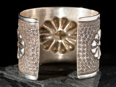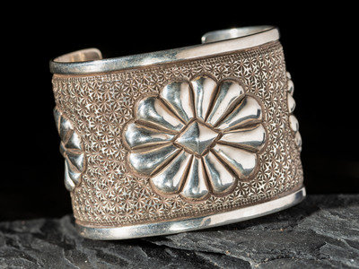 Heavily Stamped Silver Cuff Bracelet, with Repousse Designs