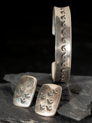 Silver Cuff Bracelet AND Post Earrings