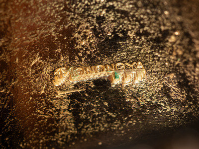 Tufa Cast 14K Gold Cuff Bracelet, with Mosaic Inlay Design Accented by Diamonds