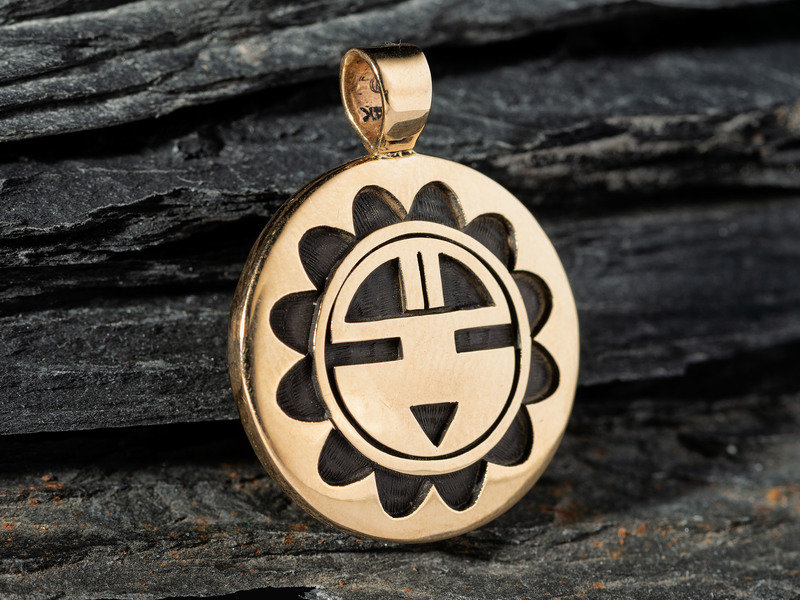 14K Gold Reversible Man-in-the-Maze and Sun Face Pendant
