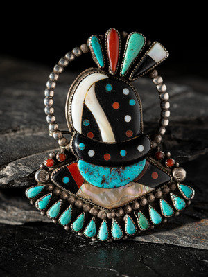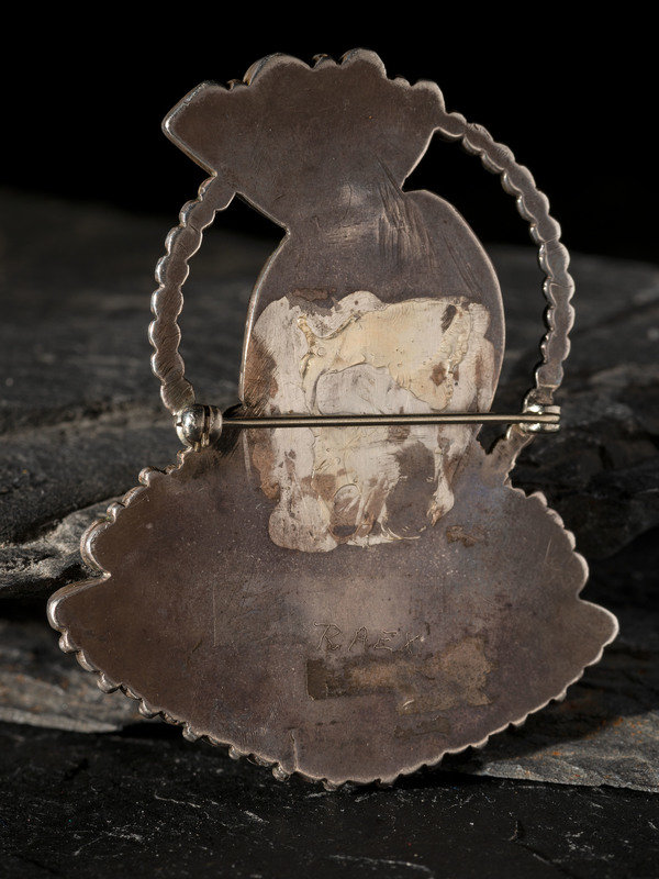 Silver and Mosaic Inlay Fire God Brooch / Pin