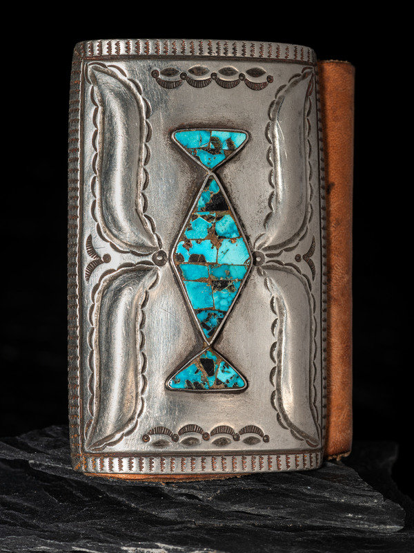 Navajo Silver and Mosaic Inlaid Turquoise Ketoh
