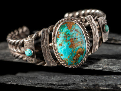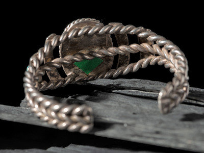 Navajo Silver Twisted Wire Cuff Bracelet, with Blue Gem Turquoise