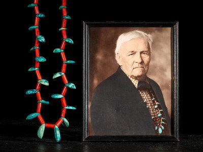 Includes a photo of Henry Chee Dodge wearing the necklace.